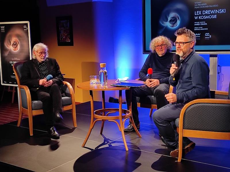 Po bardzo dobrze przyjętej premierze filmu odbyło się spotkanie z artystą i reżyserem. Odpowiadając na pytania widzów mówili o tym, jak budowali wzajemne zaufanie i pracowali nad dokumentem, by ostatecznie zyskał taki kształt. Marek Osajda zdradził, że profesor Drewinski bardzo zaangażował się w jego realizację, dodawał własne pomysły, dzielił się spostrzeżeniami. Zaproponował m.in. włączenie do filmu tak zwanych ruchomych i pisanych plakatów. Stworzył logo z tytułem. Udział w dokumencie miał też syn profesora Kiryk Drewinski, którego piosenka zabrzmiała w finale produkcji.