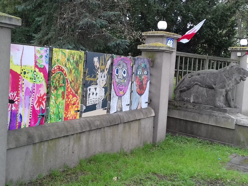 Ogrodzenie gryfińskiego Pałacyku pod Lwami zajaśniało na majówkę; od minionego piątku mieni się różnymi kolorami kilkudziesięciu prac uczestników zajęć organizowanych w pracowniach plastycznych Gryfińskiego Domu Kultury. To „Galeria w Zasięgu Oka”, przygotowana z myślą o mieszkańcach i gościach odwiedzających miasto. Przechodzący zatrzymują się, podziwiają i z uznaniem oceniają, że taka plenerowa ekspozycja to świetny pomysł.
