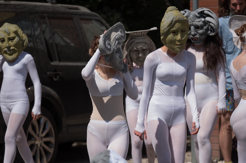 Niesamowite postaci z wieeelkimi głowami pojawiły się w sobotę na szczecińskim podwórku przy ul. Księcia Bogusława X 7. Chodzą słuchy, iż to maszkarony, które zleciały z budynków w centrum miasta i zamieniły się - z rzeźbiarskich motywów dekoracyjnych na kamienicach w maski tajemniczych uczestników happeningu.