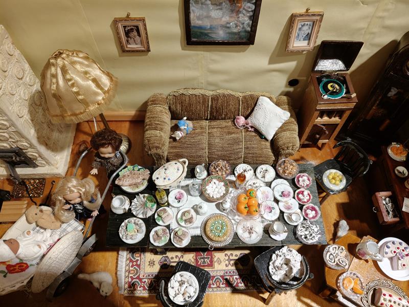 Właśnie ktoś nakrył do stołu. W głębokich talerzach czeka barszcz uszkami, pierogi, śledzie, karp i ryba w galarecie. Dwójka dzieci zagląda do wózka najmłodszego, który zasnął z ukochaną przytulanką - misiem. W otwartej szufladzie błyszczą srebrne sztućce. Na łasuchów czekają mazurki, makowce, nawet tort i pomarańcze. Na ścianie „pamiątka pierwszej komunii" - starszych sióstr zdjęcia. Nikt nie przegania kota, który na kanapie bawi się kłębkiem błękitnej włóczki. Na gramofonie płyta. W jednym kącie stary skrzyniowy zegar wybija godzinę. W drugim - kaflowy piec ogrzewa pokój w oczekiwaniu na nadejście gości. Fajansowe filiżanki wciąż puste. Aż chciałoby się zajść do tego domu...