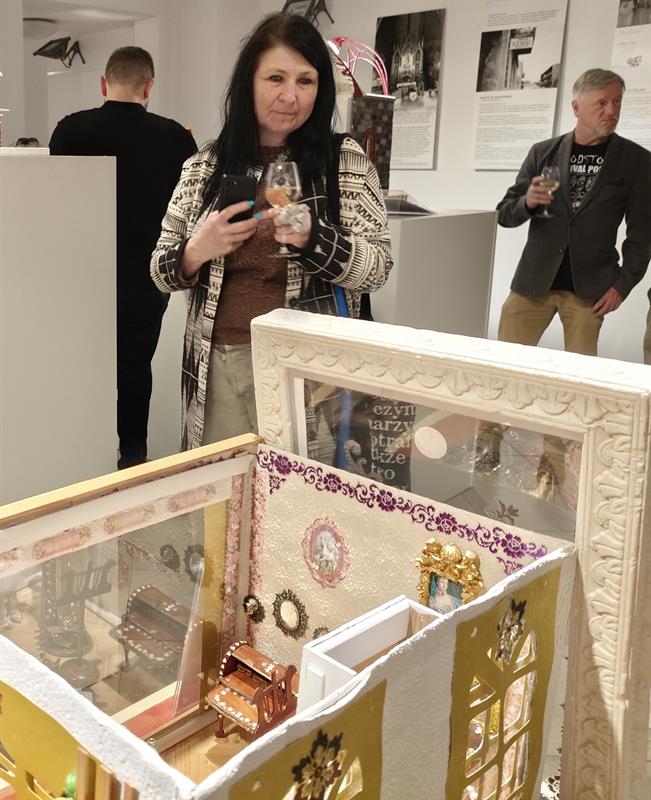 Wernisażowi wystawy pt. „To nie są zabawki" towarzyszyło spotkanie z autorką misternych miniatur. Moderatorką dyskusji była Barbara Markowska z Miejskiej Biblioteki Publicznej oraz Stowarzyszenia Bibliotekarzy Polskich. W rozmowie nawiązywano do trzech książek: „Poniemieckie” Karoliny Kuszyk, „Odrzania” Zbigniewa Rokity oraz „Niedopolska” Sławomira Sochaja.
