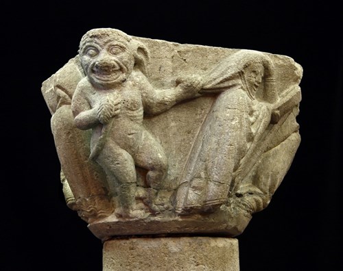 Czarci kapitel z klasztoru cysterskiego w Kołbaczu, warsztat gotlandzki, ok. 1330–1340 r., wapień gotlandzki