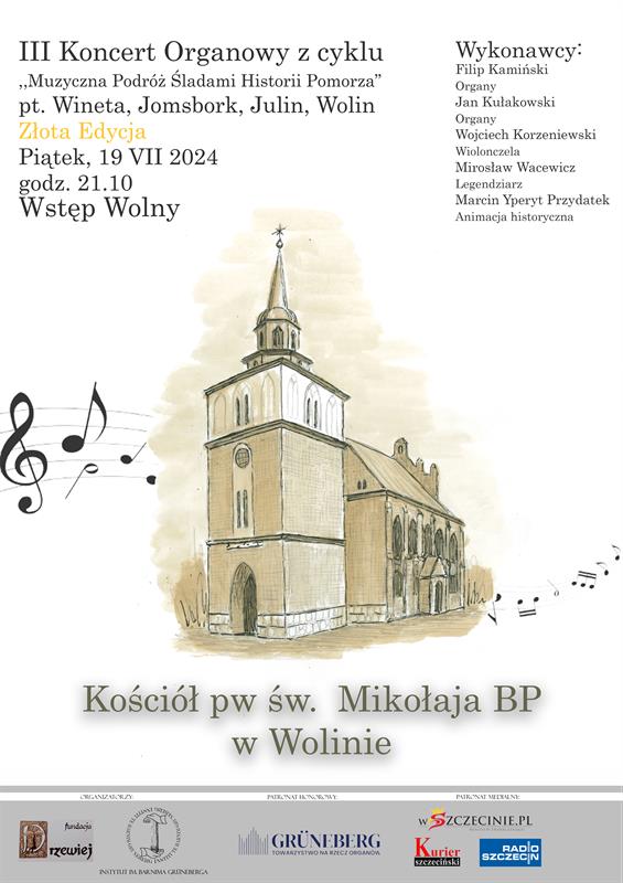 „Wineta, Jomsbork, Julin, Wolin” to tytuł koncertu, jaki odbędzie się już w piątek 19 lipca w kościele pw. św. Mikołaja w Wolinie.