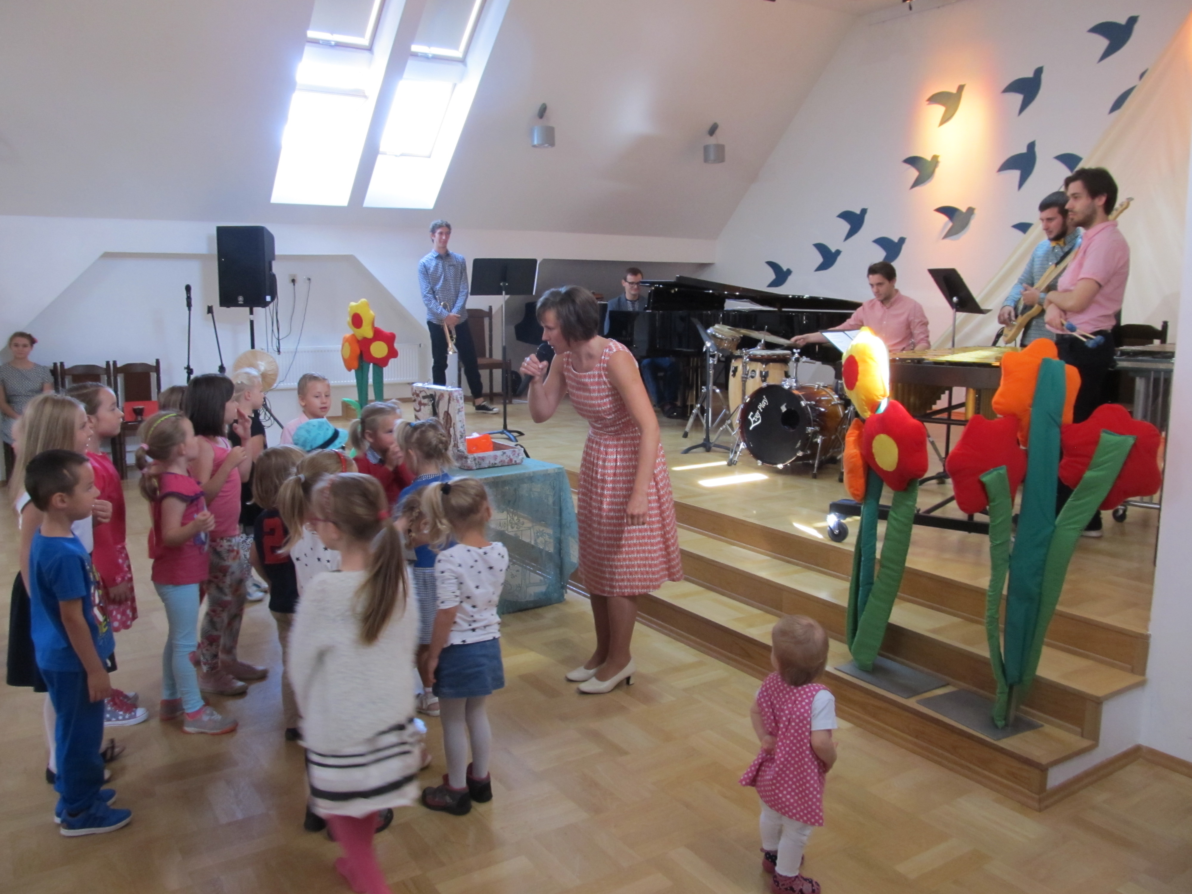 Przed licznie zgromadzoną w sali koncertowej publicznością w różnym wieku zaprezentowali się uczniowie i nauczyciele PSM: Piotr Spławski (trąbka), Marcin Rakowski (perkusja), Piotr Rakowski (marimba), Przemysław Wieleba (fortepian) i Krzysztof Borkowski (gitara) oraz prowadząca koncert Agata Spodniewska-Kanarek wraz ze swą córką Marysią, czyli „Nastką Szesnastką".