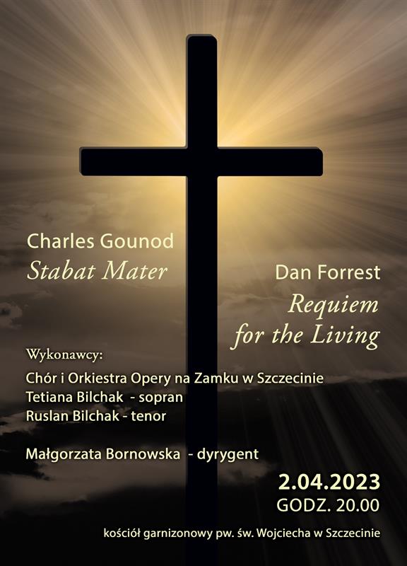 Chór i Orkiestra Opery na Zamku w Szczecinie organizują koncert wielkopostny. Usłyszymy podczas niego „Stabat Mater” Charles’a Gounoda oraz „Requiem for the Living” Dana Forresta. Średniowieczna sekwencja „Stabat Mater” wprowadzona przez Kościół katolicki do liturgii i wykonywana w czasie Wielkiego Postu od wieków inspiruje artystów. Temat ten podjął również francuski kompozytor Charles Gounod. Jego fascynacja twórczością mistrzów przeszłości – Jana Sebastiana Bacha czy Wolfganga Amadeusza Mozarta znalazły swoje odbicie w zainteresowaniu muzyką religijną. Powstałe w 1867 roku „Stabat Mater” to mało znany jednoczęściowy utwór na chór mieszany, orkiestrę i organy z dedykacją na partyturze „dla mojego przyjaciela Hectora Berlioza”. „Requiem for the Living” skomponowane w 2013 r. przez Dana Forresta – amerykańskiego kompozytora młodego pokolenia, uznawane jest za jedno z największych dzieł muzycznych XXI wieku. Forrest zastosował w kompozycji pomysłowe rozwiązania rytmiczne oraz wprowadził innowacyjne i zaskakujące zmiany, m.in. w łacińskie teksty wplótł mszalne cytaty i fragmenty ze Starego Testamentu w języku angielskim. Kompozycja stanowiąca rodzaj modlitwy o pokój oraz wytchnienie dla żyjących i zmarłych ma przynieść ukojenie dla bólu, żalu i smutku trawiącego współczesnego człowieka. Pełen dynamizmu utwór zachwyca optymistyczną i radosną melodyką. Jeden z fragmentów „Requiem” – „Pleni sunt caeli et terra gloria tua” („Pełne są niebiosa i ziemia chwały Twojej”) inspirowany jest obrazami z Kosmicznego Teleskopu Hubble’a.