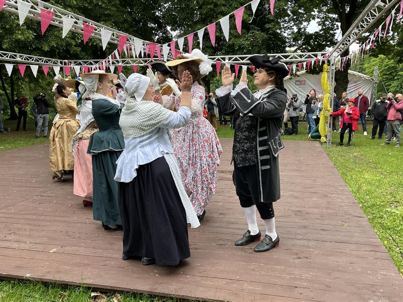Choć kapryśna pogoda płatała figle, Różanka była odpowiednim miejscem na powrót do przeszłości. Szczecińscy rekonstruktorzy ze Stowarzyszenia METRUM zorganizowali tam stylowy piknik XVIII-wieczny, podczas którego podzielili się z mieszkańcami miasta kulturą tego okresu: muzyką, tańcem i modą. Podczas wspólnej zabawy można było spróbować haftu, porozmawiać i obejrzeć dworskie tańce. (K)
