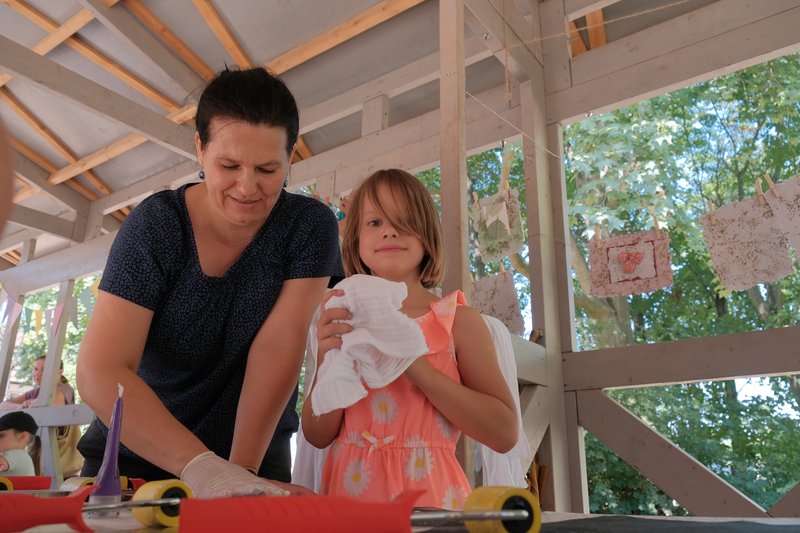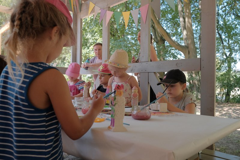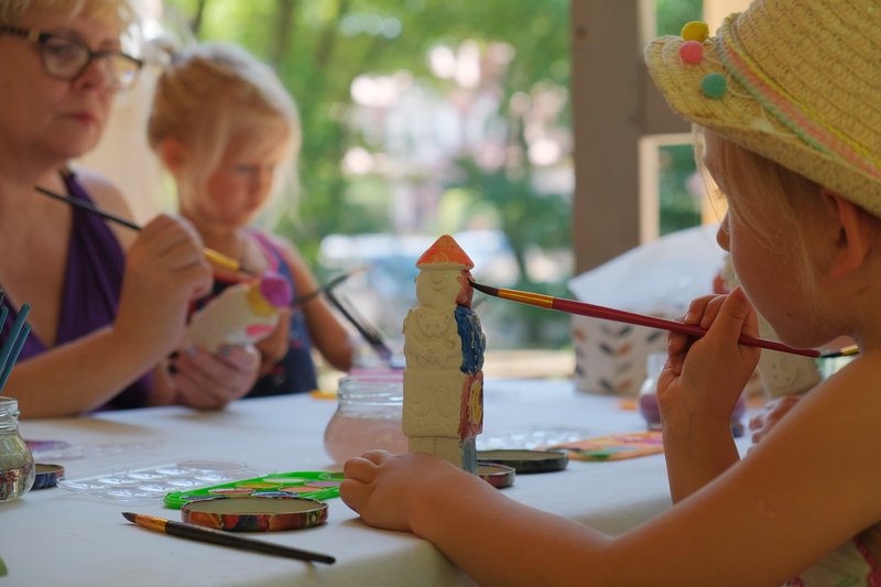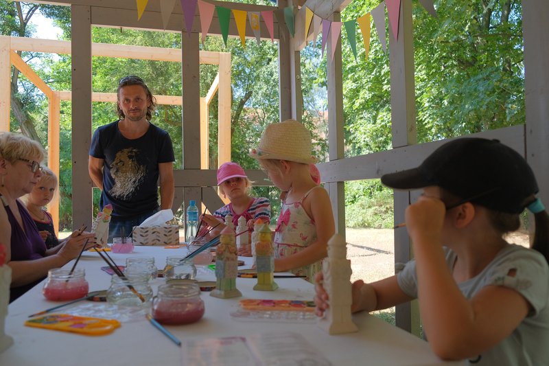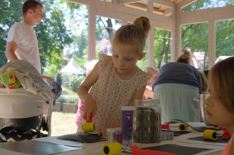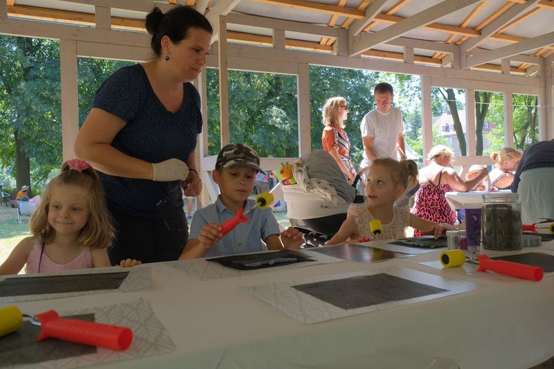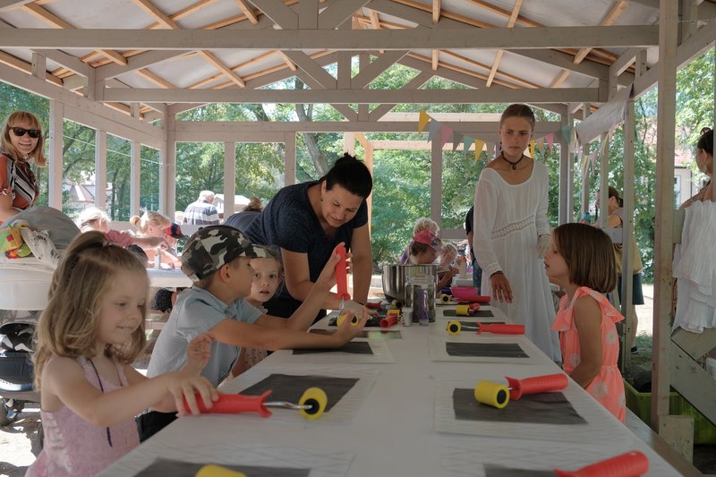 Równocześnie w Ogrodzie Różanym odbywały się zajęcia dla dzieci, m.in. warsztaty rzeźbiarskie inspirowane Światowidem z Liczkowiec, tworzenie papieru czerpanego w dawnej technice i spotkanie warsztatowe z Marysią Dąbrowską, znaną najmłodszym z roli Pippi w spektaklu Teatru Lalek Pleciuga "Pippi Pończoszanka".