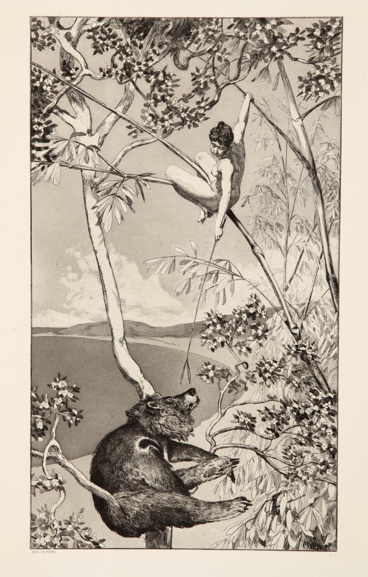 W szczecińskim muzeum obejrzymy akwafortę „Niedźwiedź i sylfida" z 1881 roku, ze zbiorów własnych instytucji. Jak pisze Volker Probst: „Sylfida, przedstawiona jako akt kobiecy – bez innych atrybutów sylfidy, na przykład skrzydeł – gałązką bambusa drażni niedźwiedzia, wylegującego się poniżej na gałęziach. Na pozór beztroska sytuacja kryje w sobie mocne napięcie, gdyż nagiej kobiety nic nie chroni, a mocarny niedźwiedź spogląda w górę. Wszystko może w każdej chwili przybrać dramatyczny obrót, sylfida bowiem chwiejnie balansuje na pędzie bambusa. Złudna harmonia może lada moment skończyć się katastrofą".