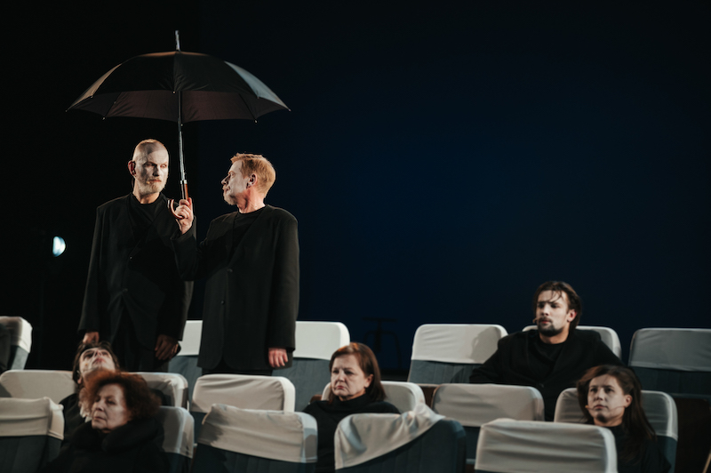 – Dostałam w prezencie książkę, bardzo pięknie wydaną, pod tytułem „Odlot” autorstwa Zenona Fajfera. Jest to popis kunsztu edytorskiego. Natomiast ja chciałam spróbować, jak ten tekst wytrzymuje próbę teatru. On jest utworem afabularnym, czymś, co pokazuje, w jaki sposób zaczyna się katastrofa społeczna, która trwa. W tym locie nierealnym zupełnie, trochę będącym obcowaniem z bytami spoza realnego świata, funkcjonują ludzie – mówi Anna Augustynowicz. – Cały dramat dotyczy języka i sposobu, w jaki komunikujemy się między sobą. Bo już trudno określić nas jako społeczeństwo dialogu. Podczas lotu, w którym wszyscy uczestniczymy, wieziemy tony lęku. Lęku – czy wylądujemy, jak wylądujemy i czy wszystko to, w czym teraz uczestniczymy, może się zakończyć. Materia dla reżysera jest zatem bardzo ciekawa. Tekst został napisany w 2016 roku. Autor mi opowiadał, że zaczął go pisać 13 grudnia. Zatem jest w tym pewnego rodzaju zabawa, że te daty się splatają.