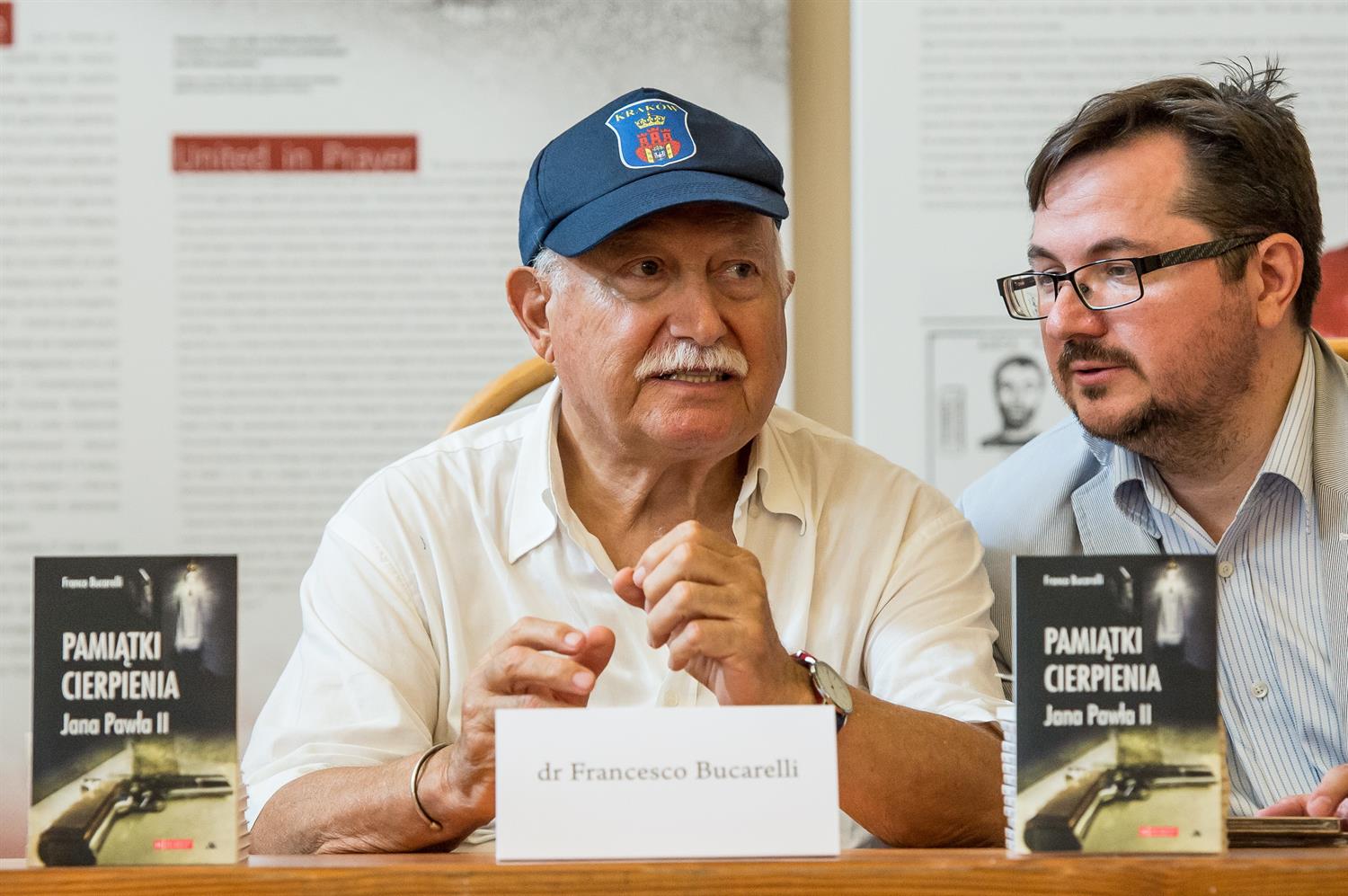 – Autor wraca do zamachu na Jana Pawła II, by pogłębić niektóre wątki tej tajemniczej i coraz bardziej zapominanej historii. Pretekstem są skuteczne starania, jakie podjął w Rzymie, by odszukać kilka przedmiotów o wielkim znaczeniu dla historii życia papieża. To pistolet, z którego strzelał zamachowiec Ali Agca, garnitur policjanta, który ochraniał Ojca Świętego, a także wyposażenie pokoju szpitalnego z polikliniki Gemelli. Dzięki Bucarelliemu zobaczyć je można w Muzeum Domu Rodzinnego Jana Pawła II w Wadowicach – poinformowała rzecznik muzeum Maria Budzińska.