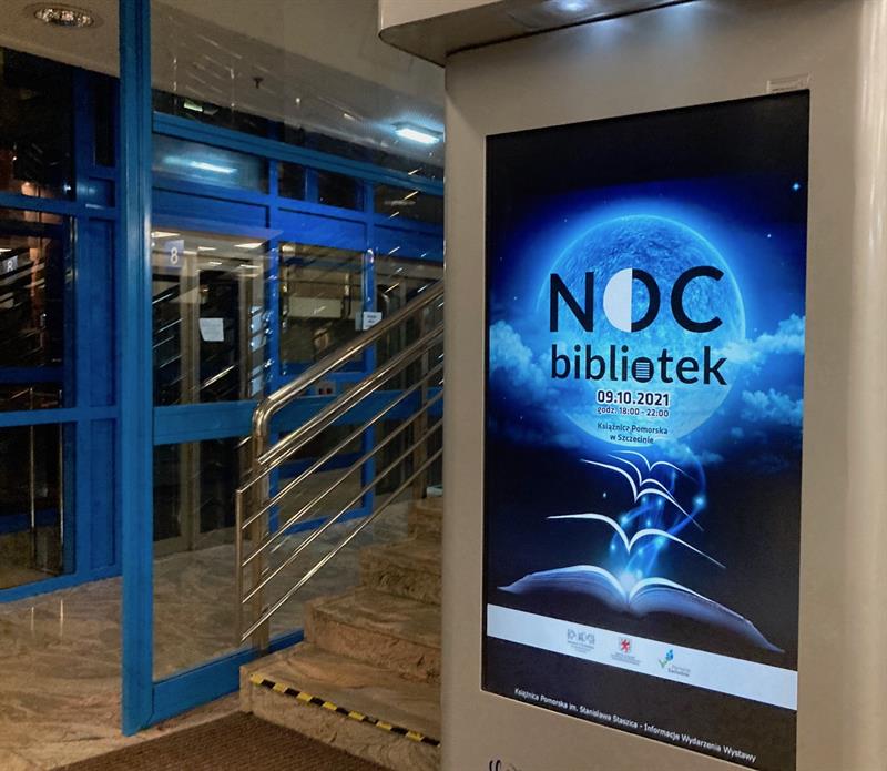 Książnica będzie dostępna w sobotę 9 października w g. 18 - 22. Na wszystkie wydarzenia obowiązują wejściówki do pobrania ze strony app.evenea.pl. W miarę dostępności będzie możliwe ich wydrukowanie na miejscu, w informatorium na pierwszym piętrze.