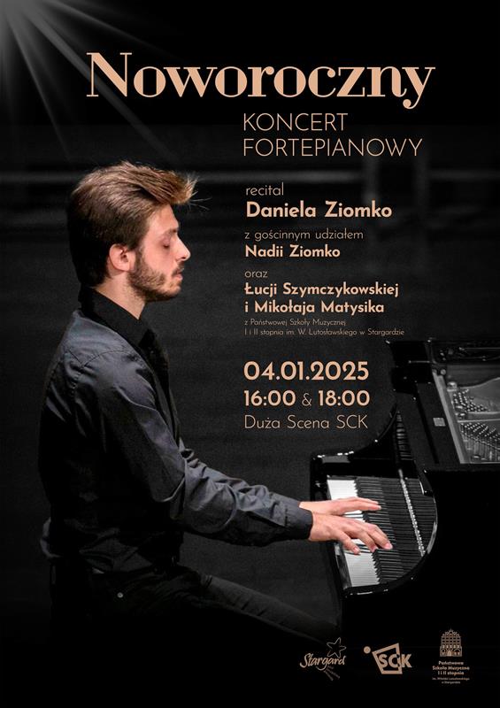 Na scenie SCK stanie dr Daniel Ziomko, utalentowany stargardzianin, pianista, kompozytor i nauczyciel. Towarzyszyć mu będą Nadia Ziomko, skrzypaczka związana z Polską Filharmonią „Sinfonia Baltica” im. Wojciecha Kilara w Słupsku, Łucja Szymczykowska i Mikołaj Matysik z Państwowej Szkoły Muzycznej I i II st. im. W. Lutosławskiego w Stargardzie. W programie m.in. César Franck – Sonata na skrzypce i fortepian A-dur oraz L. van Beethoven – 32 Wariacje c-moll WoO 80.