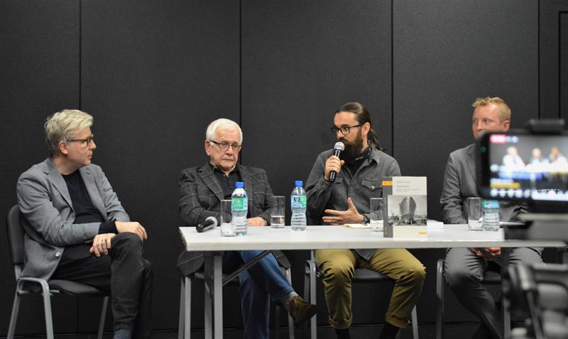 Sławomir Iwasiów (drugi od prawej) promował w Centrum Dialogu "Przełomy", filii Muzeum Narodowego w Szczecinie, swoją książkę zatytułowaną „Wodowanie. Literatura i inne media w Szczecinie. Lata 60. XX wieku”. O faktycznym albo mitycznym portowym charakterze Szczecina dyskutowali Sławomir Iwasiów, socjolog Robert Bartłomiejski i dziennikarz Janusz Zarzycki. Spotkanie poprowadził Maciej Kowalewski.