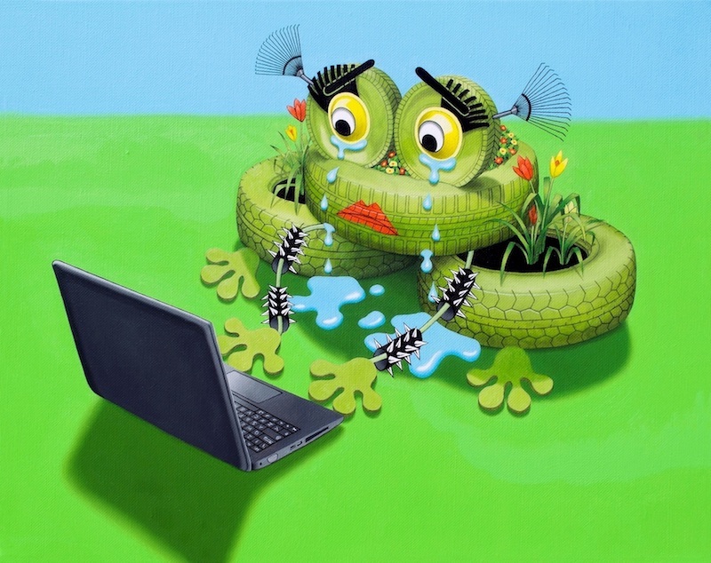 - Obrazy o metalu są uszczypliwe, zahaczają o symbole powszechnie z nim kojarzone: pentagramy, odwrócone krzyże, a także o elementy pochodzące ze świata prowincji: rzeźby z opon i ozdoby ogrodowe. Rzeźby z jednej strony, ukazują dążenie człowieka do otaczania się czymś własnoręcznie przetworzonym, są próbą odnalezienia piękna w przedmiotach codziennego użytku lub nadania im drugiej funkcji, kiedy są już zepsute. (…) Z drugiej strony jest to obraz gustu zniekształconego przez pryzmat biedy – mówi Marek Rachwalik.