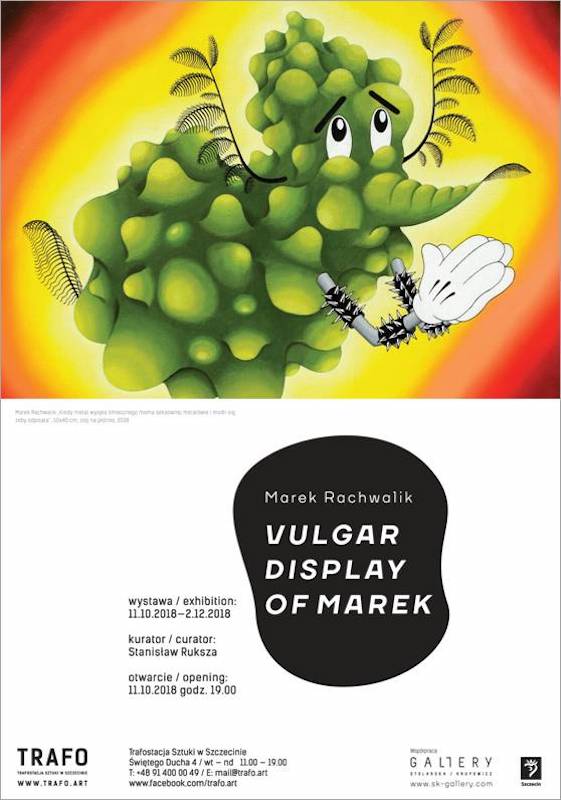 Najnowsze obrazy Marka Rachwalika zaprezentuje szczecinianom Trafostacja Sztuki podczas wystawy „Vulgar Display of Marek” organizowanej we współpracy z Open Gallery Moniki Krupowicz i Stolarska/Krupowicz Gallery. Prace artysty inspirowane estetyką metalową były wielokrotnie nagradzane na wielu prestiżowych festiwalach i konkursach malarskich. Uroczyste otwarcie wystawy odbędzie się w piątek (11 października) o godz. 19.00