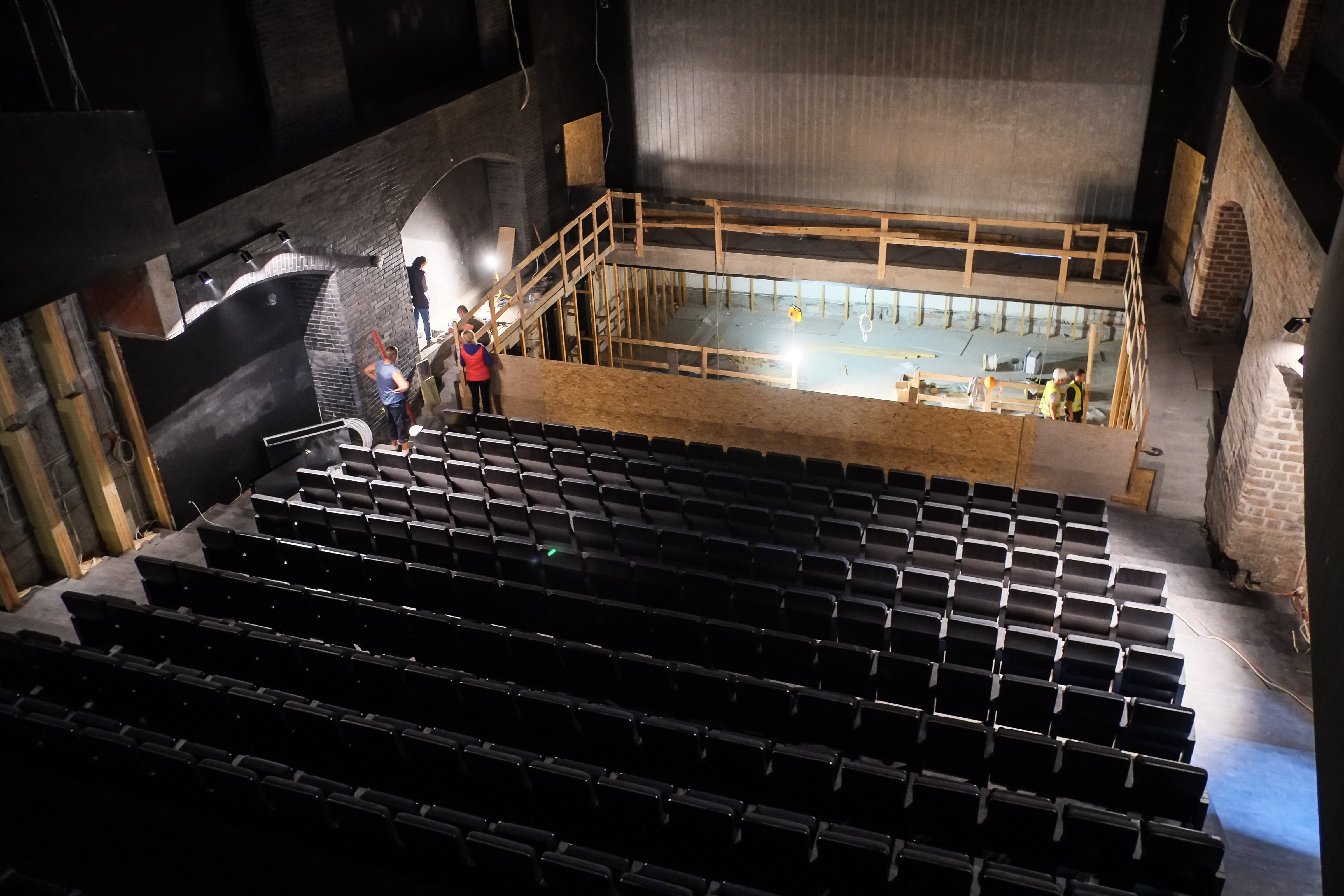 W czarno-białym foyer lada dzień kładziony ma być na suficie specjalny, natryskowy tynk, który tłumi hałasy. Wiszą już efektowne lampy z regulowanym natężeniem światła i możliwością zmiany jego kolorów. Gotowa jest już też konstrukcja sceny: mechanizm obrotowy już stoi, teraz wystarczy go tylko przykryć podłogą i sosnowym parkietem. Zamontowano już też podnoszony orkiestron.