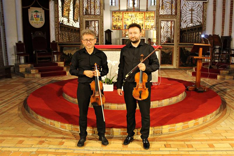 Część kameralna piątkowego kamieńskiego spotkania z muzyką należała do skrzypiec za sprawą wirtuozów tego instrumentu – Bartłomieja Nizioła i Radosława Pujanka. Pochodzący ze Szczecina Bartłomiej Nizioł jest artystą doskonale znanym festiwalowej publiczności, występującym w Kamieniu od 1989 r. Artysta ukończył z wyróżnieniem klasę skrzypiec prof. Jadwigi Kaliszewskiej na Akademii Muzycznej im. Ignacego Jana Paderewskiego w Poznaniu. Zajmował pierwsze miejsca na najbardziej liczących się międzynarodowych konkursach skrzypcowych, w tym X Międzynarodowym Konkursie Skrzypcowym im. Henryka Wieniawskiego w Poznaniu w 1991 r. Został czterokrotnie nagrodzony „Fryderykiem” za nagranie utworów Henryka Wieniawskiego, Grażyny Bacewicz, Eugène Ysaÿe’a i Karola Lipińskiego. Jako solista występował z czołowymi orkiestrami Europy. Od 1995 r. mieszka w Szwajcarii. W latach 1997 – 2003 był koncertmistrzem Orkiestry Tonhalle, a od 2003 r. koncertmistrzuje Orkiestrze Opery w Zurychu. Od piętnastu lat jest profesorem Uniwersytetu Sztuki w Bernie. Drugi z wirtuozów – Radosław Pujanek ukończył z wyróżnieniem Akademię Muzyczną im. Ignacego Jana Paderewskiego w Poznaniu oraz stołeczną Akademię Muzyczną im. Fryderyka Chopina. Jest laureatem ogólnopolskich i międzynarodowych konkursów, a swoje umiejętności doskonalił na kursach mistrzowskich u najwybitniejszych polskich wiolinistów. Obecnie pracuje jako I koncertmistrz Filharmonii im. Witolda Lutosławskiego we Wrocławiu i wykładowca na Wydziale Instrumentalnym Akademii Muzycznej im. Karola Lipińskiego we Wrocławiu. Podczas występu wioliniści zaprezentowali wspólnie Sonatę per due violini Henryka Mikołaja Góreckiego i Passacaglię Georga Friedricha Händla. Kaprys nr 3 Henryka Wieniawskiego zagrany przez Bartłomieja Nizioła zakończył piątkowy koncert, a kamieńska publiczność nagrodziła wirtuozów owacją na stojąco.