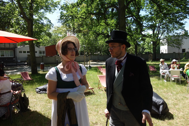 Sobotnie spotkanie (03.06.) zgromadziło sporo osób związanych z artystycznymi środowiskami miasta. Byli aktorzy, muzycy, literaci. Tradycją spotkań jest uczestnictwo w nim osób ubranych w stroje określonej epoki. Tym razem obowiązywały kreacje nawiązujące do wieku XIX.