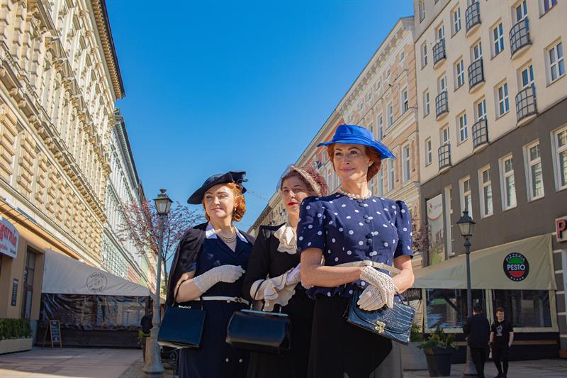 Pierwszy spacer w stylu retro opanował Śródmieście. Uczestnicy ubrani w stroje z dawnych epok budzili zachwyt przechodniów. Fot. Agata Jankowska