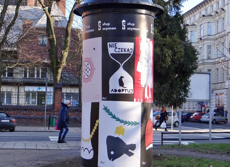 Kto jeszcze nie dotarł do plenerowej galerii pn. Słup Szymon, ten jak najszybciej powinien nadrobić kulturalne zaległości. I wybrać się do parku Andersa, gdzie od strony ul Więckowskiego i Bogurodzicy właśnie jest prezentowana sztuka zaangażowana. Konkretnie: plakaty upominające się o prawa zwierząt.
