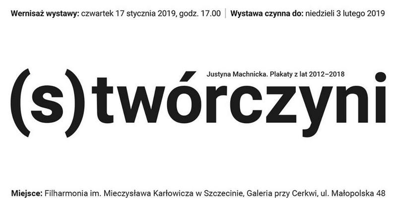 W czwartek o godz. 17 w Galerii przy Cerkwi Filharmonii im. Mieczysława Karłowicza w Szczecinie zostanie otwarta wystawa pt. „(s)twórczyni/Justyna Machnicka. Plakaty 2012-2018”.