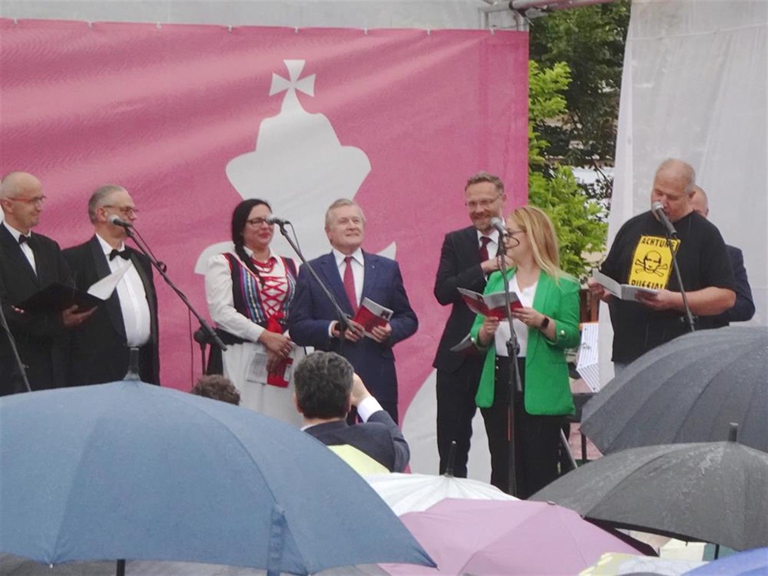 Deszczowa pogoda nie wystraszyła mieszkańców Szczecina, którzy licznie przybyli w niedzielne popołudnie na plac Lotników. Po raz 20. odbyło się tu wspólne śpiewanie pieśni i piosenek patriotycznych. Koncert odbył się pod hasłem: „W hołdzie bohaterom polskiej wolności”.