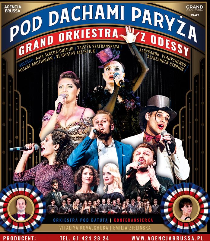 Paryż… Od stu lat oczy (i uszy) świata są zwrócone na piosenkę francuską, która się urodziła pod dachami Paryża, na Polach Elizejskich, pod wieżą Eiffla, w Lasku Bulońskim i przy szklanej piramidzie przed Luwrem. To muzyka znaczona takimi nazwiskami, jak: Edith Piaf, Joe Dassin, Dalida, Mireille Mathieu. To kankan, kabarety, a nawet upiór – bo przecież to właśnie w gmachu opery paryskiej straszył bohater powieści i musicalu. Już w najbliższy poniedziałek – 7 lutego Grand Orkiestra z Odessy zaprasza na dwugodzinne spotkanie z muzyką francuską, dające okazję do wzruszeń i uśmiechu, jak to zwykle bywa pod dachami miasta zakochanych. Wśród wykonywanych utworów nie zabranie takich przebojów, jak Le Temps des Cathédrales z musicalu Dzwonnik z Notre Dame lub La Valse d’Amélie z wielkiego kinowego przeboju Amelia.