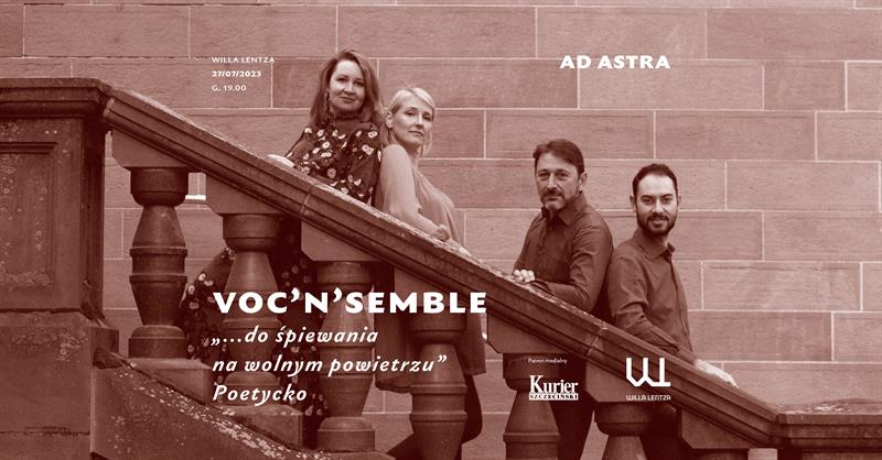 W szczecińskiej Willi Lentza tym razem poetycko i na wolnym powietrzu. W ramach cyklu Ad Astra wystąpi w czwartek (27.07) kwartet wokalny VOC’N’SEMBLE.