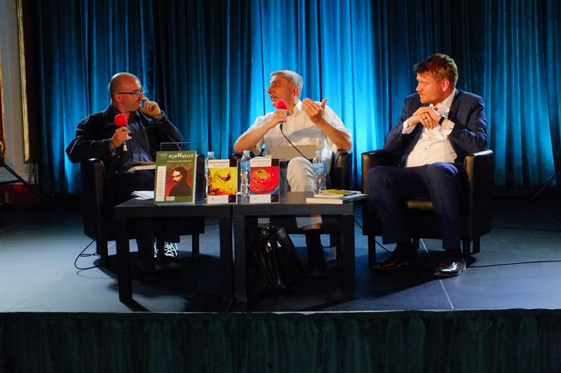 „Jądro ciemności” w twórczości Cypriana Kamila Norwida. Autor "Vade - mecum" wobec filozofii Nietzschego. Rozwój literatury pandemicznej. Między innymi takie kwestie omawiano na spotkaniu w Klubie XIII Muz, podczas którego promowano nowy numer kwartalnika "eleWator" poświęcony Norwidowi, Piotr Michałowski (w środku) opowiadał o swoim tomie "Dzień jest wierszem, świat kolorem" a Karol Samsel (z prawej) o swoim poemacie "Autodafe 4". Spotkanie poprowadził Damian Romaniak. Tomy Michałowskiego i Samsela ukazały się w szczecińskim wydawnictwie FORMA.