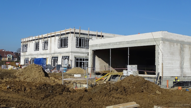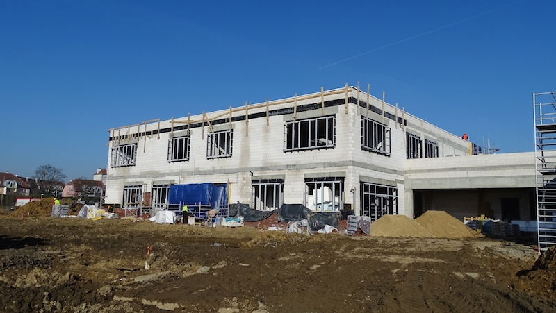 W styczniu rozpoczęto murowanie elewacji z cegły klinkierowej wraz z ociepleniem budynku wełną. W wielu miejscach widać już kolor elewacji.