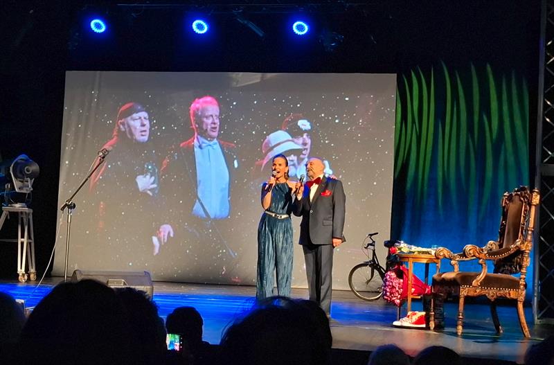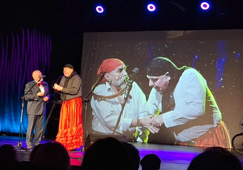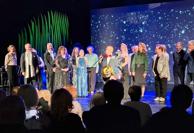 Wiesław Łągiewka wyśpiewał satyryczną historię swojej kariery, z której wynika, że śpiew przydaje mu się od wczesnego dzieciństwa na każdym etapie życia i prowadzi zawsze do sukcesu. Jako aktor śpiewający od początków swej scenicznej pracy w Szczecinie związany był z Operą i Operetką, następnie z Operą na Zamku oraz Teatrem Polskim, gdzie stale występuje. W Akademii Muzycznej i Akademii Sztuki prowadził zajęcia z dykcji, wydał kilka płyt z piosenkami autorstwa szczecińskich artystów, w tym także w duecie z córką Martą, aktorką i reżyserką Teatru Lalek "Pleciuga". Przez te lata, co podkreślano w parafrazie "Dumki na dwa głosy" występował z trzema kolejnymi pokoleniami Brodzińskich: Ireną, jej córką Grażyną i wnuczką Natalią. Ta ostatnia zaśpiewała jubilatowi arię z operetki "Zemsta nietoperza". Zresztą znakomitych wykonań było podczas Benefisu naprawdę wiele, jubilat nie krył wzruszenia i nie szczędził braw. Wystąpili m.in. duet Jackpot Music, Andrzej Szpak, Ryszard Leoszewski, Danuta i Dariusz Kamińscy, Olga Adamska, Adrianna Szymańska, Dorota Chrulska, Adam Dzieciniak, Krzysztof Niewirowski, Sławomir Kołakowski, Mirosław Kupiec. Wielu z nich podkreślało nie tylko sceniczne umiejętności jubilata, ale także jego koleżeńskość i wrażliwość. Michał Janicki zaintonował na cześć Wiesława Łągiewki trzykrotne: Hip hip hura!, na co gromko odpowiedziała licznie zgromadzona publiczność. Natomiast Piotr Bumaj do muzyki znanego standardu Sinatry "My Way" zaśpiewał przesłanie, aby zawsze iść swoją drogą. Benefis zakończyło wspólne odśpiewanie jubilatowi "Sto lat!". Życzeń i wspomnień nie było końca. (el)