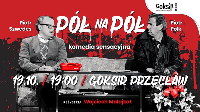 Komedię sensacyjną „Pół na Pół” można obejrzeć już dziś - 19 października, godz.19 w Gminnym Ośrodku Kultury, Sportu i Rekreacji w Przecławiu, bilety do nabycia w serwisie www.bilety.fm i www.biletomat.pl - lub do wygrania w naszym konkursie!