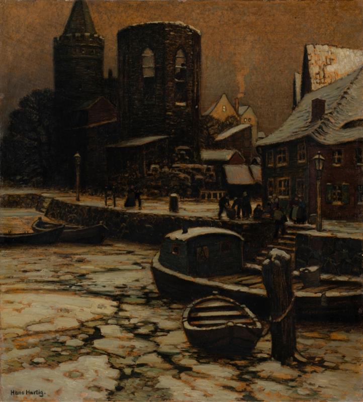 Hans Hartig urodził się w 1876 roku. Był pomorskim malarzem specjalizującym się w pejzażach, widokach miast i miasteczek Pomorza. Pierwszym poważnym sukcesem Hartiga była ekspozycja obrazu „Dolina Odry” w sali Eugena Brachta podczas Wielkiej Wystawy Berlińskiej w 1901 roku i jego zakup do zbiorów berlińskiej Galerii Narodowej. W 1909 roku wziął udział w wystawie sztuki niemieckiej w Nowym Jorku, prezentując „Widok portu zimą”, w 1910 roku podczas Wielkiej Wystawy Berlińskiej zdobył nagrodę Królewsko-Pruskiej Akademii Sztuk Pięknych za obraz ukazujący nadmorski jesienny ogród, która umożliwiła artyście studyjny pobyt w 1911 roku na wyspie Sylt. W 1913 roku brał udział w Biennale w Wenecji, w 1914 roku dostąpił zaszczytu oprowadzania po Wielkiej Wystawie Berlińskiej cesarza Wilhelma II. Jego prace sprzedawano na całym świecie. Całe życie utrzymywał kontakt ze Szczecinem i Pomorzem, bywał w Gartz an der Oder, Trzebiatowie, Gryficach, Nowym Warpnie. Chętnie malował widoki portowe pełne łodzi i statków. W 1916 roku został współorganizatorem i członkiem założonego w Szczecinie Stowarzyszenia Artystów Pomorskich (Pommerscher Künstlerbund). W 1932 roku otrzymał honorowe wyróżnienie Związku Artystów Berlińskich (Verein Berliner Künstler). Zmarł w 1936 roku w Berlinie.