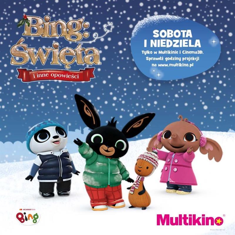 „Bing: Święta i inne opowieści” to serial animowany dla dzieci, stworzony na podstawie serii książek autorstwa Teda Dewana. W każdym z odcinków rezolutny króliczek wraz z przyjaciółmi doświadcza nowych sytuacji, z którymi uczy się radzić we właściwy sposób. W ramach sobotnich i niedzielnych "Poranków dla najmłodszych" Multikino zaprezentuje sześć wybranych odcinków animowanej serii. Dzisiaj można u nas wygrać bilety na te seanse!