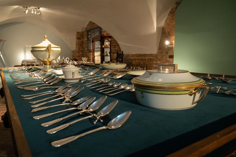 W oczekiwaniu zatem na pyszne danie, w takich miejscach, jak: „Na Kuncu Korytarza”, „City Wine”, „Na Językach”, „Hormon”, „Public Fontanny”, można się dowiedzieć o wspomnianej ekspozycji – ze specjalnych podkładek z grafiką talerza powstałego z tekstu ułożonego w „ślimaka”. Przy talerzu z kolei ułożonych jest dziewięć zabytkowych sztućców znajdujących się na zamkowej wystawie, a których dawniej używano przy zaledwie jednym posiłku.