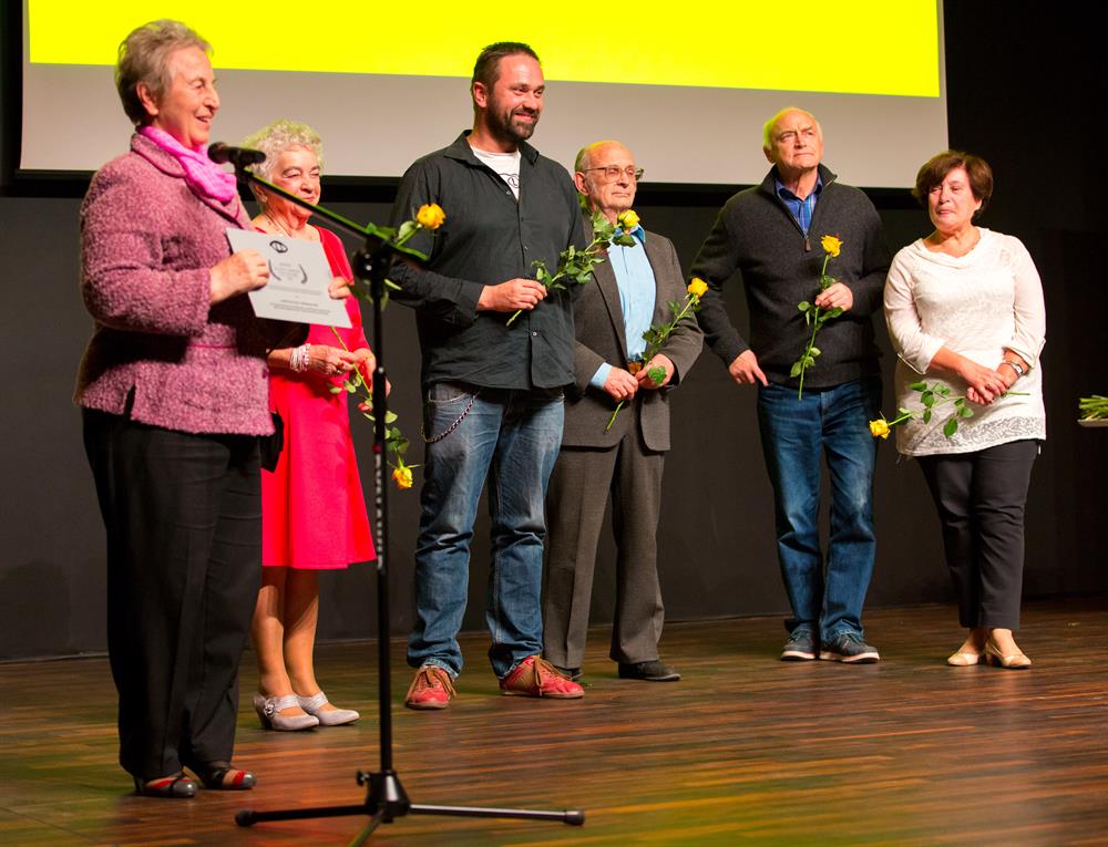 Na zdjęciu: Autorzy reportażu „...bawmy się razem...Woodstock 2013" odbierają nagrodę podczas finału SEFF.