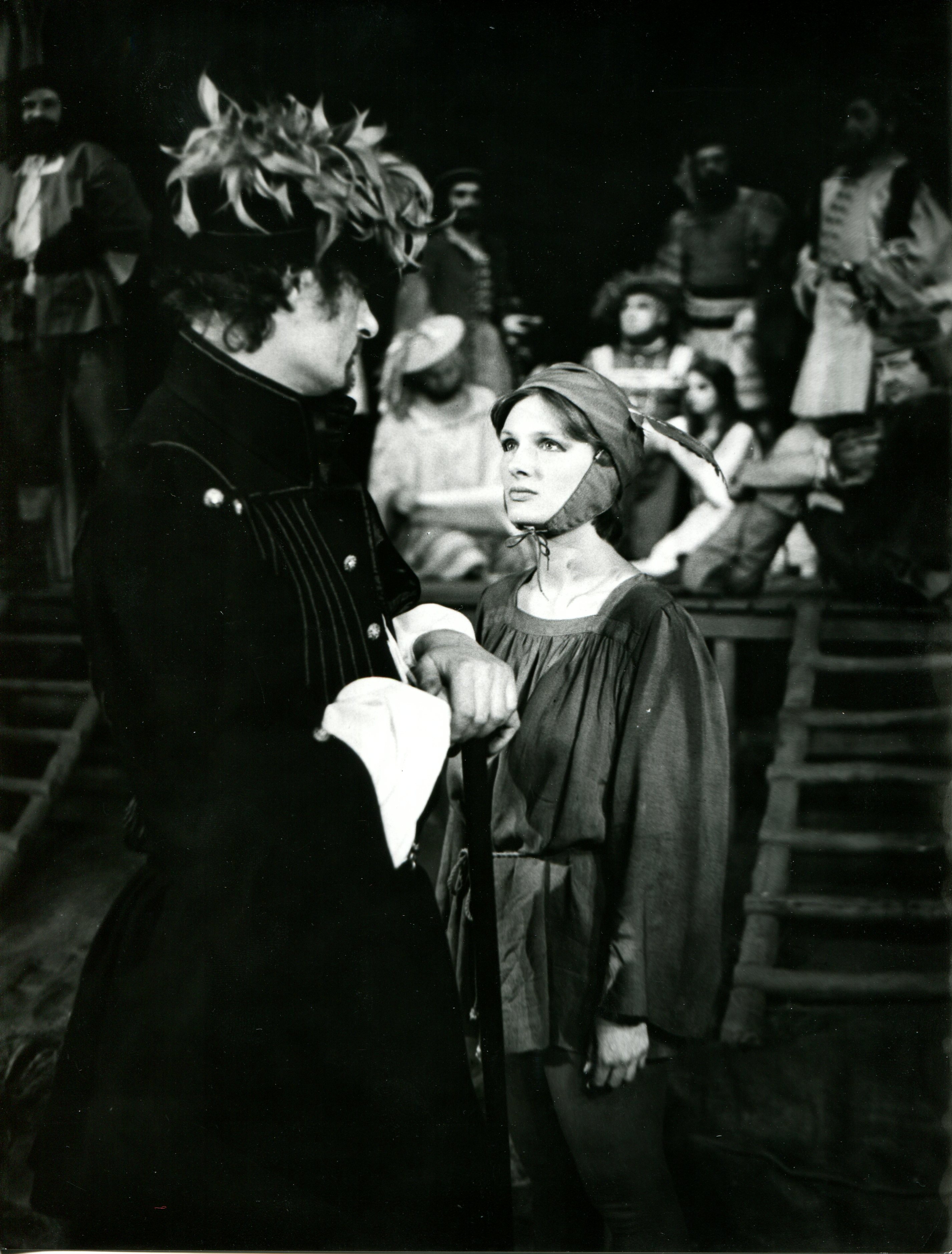 „Burza" Macieja Englerta też była inscenizacją na szekspirowską miarę. Urodziwa plastycznie (choć scenografia Marka Lewandowskiego była raczej umowna, stworzona z poszarpanych, wiszących nad sceną lin, sugerujących las i liany tajemniczej wyspy - kontrastowały z nią barwne, utrzymane w duchu epoki kostiumy), efektowna muzycznie (kompozytor Andrzej Sobieski odwoływał się do klimatów renesansu), wzbogacona ładną choreografią Zygmunta Zdanowicza.