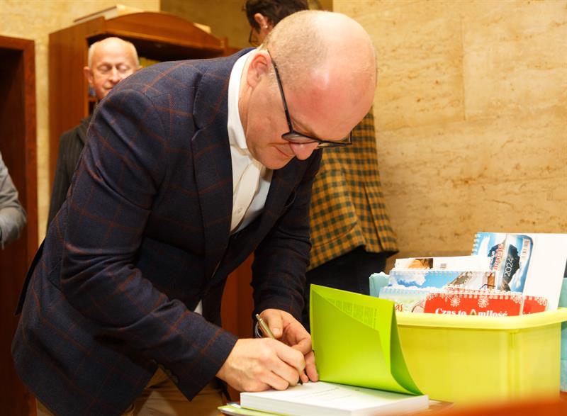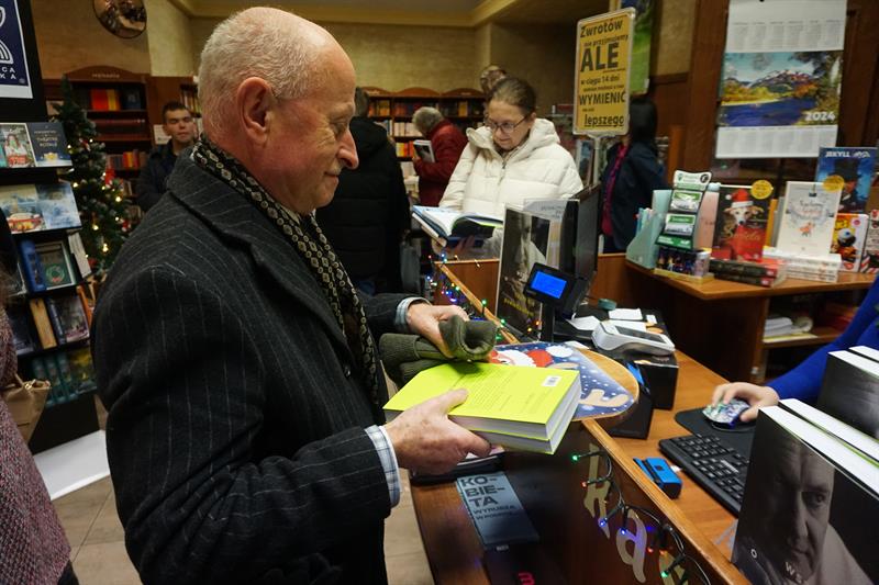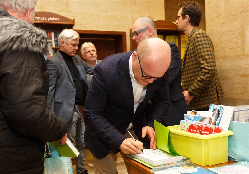Po pytaniach i odpowiedziach nadszedł czas na podpisywanie wywiadu-rzeki. W kolejce oczekujących na autograf spotkałem panów Jarosława i Sebastiana Burych, którzy oprócz książek dla siebie, mieli też jeden egzemplarz dodatkowy. – To dla mojej mamy – mówił Jarosław Bury. – Pan prezydent był jej uczniem w Szkole Podstawowej nr 61.