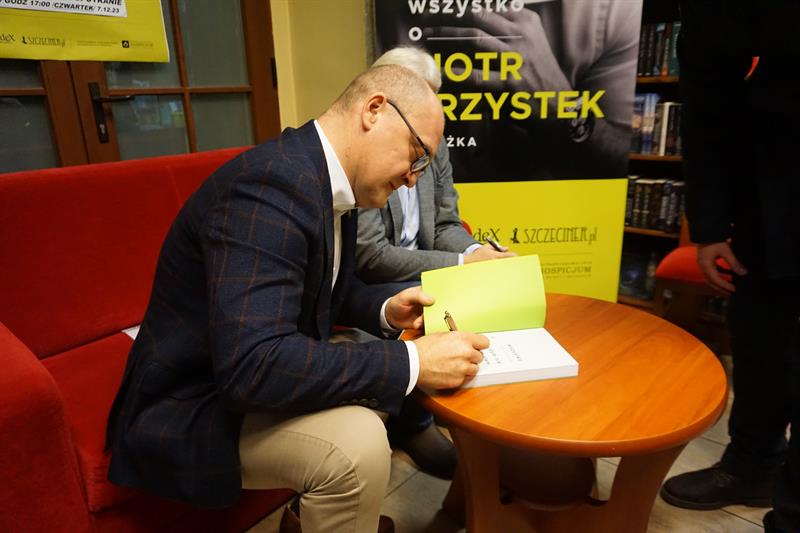 Promocja publikacji odbyła się w miniony czwartek w szczecińskiej księgarni „Zamkowa” przy pl. Hołdu Pruskiego w Szczecinie. Nie wiedzieć czemu prezydenta posadzono obok półki z napisem „sensacja, kryminał”. Może dlatego, że – jak napisano na obwolucie książki - „Dowiemy się jak ciężko jest zasiąść w fotelu prezydenta miasta i z jaką odpowiedzialnością wiąże się ta trudna i jedyna w swoim rodzaju praca”?