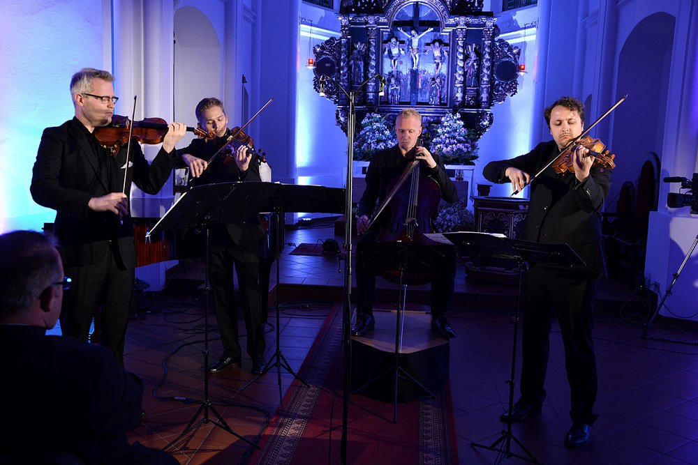 Kwartet, reprezentujący poznańską akademię muzyczną i warszawski uniwersytet muzyczny Fryderyka Chopina wystąpił dwukrotnie. W pierwszej części wirtuozi zabłysnęli w niezwykle trudnym Kwartecie smyczkowym Witolda Lutosławskiego. Obsypani międzynarodowymi nagrodami instrumentaliści zastosowali się do wytycznych kompozytora, który zalecał, by grać „…swoje partie zupełnie niezależnie od innych…”. Kipiący energią muzycy również