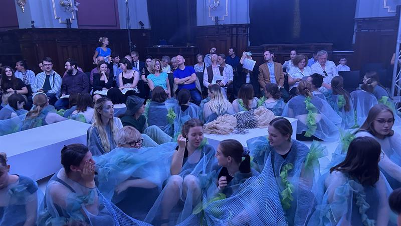 – Występując w spektaklu, studenci pozyskują praktyczną umiejętność nauki pracy scenicznej, uczą się podstaw kreacji artystycznej umożliwiającej swobodną i niezależną wypowiedź artystyczną – podkreślała prof. Ewa Filipowicz-Kosińska. – Poprzez współpracę ze studentami innych wydziałów poszerzają swoje horyzonty, poznają nowe kierunki działania… Takie spotkania stwarzają płaszczyznę do twórczych poszukiwań oraz tworzenia nowych projektów. Dlatego tak bardzo zależało mi na połączeniu tych sztuk. Zaangażowanie do procesu twórczego studentów oraz pedagogów innych wydziałów stało się istotnym celem tego wydarzenia.