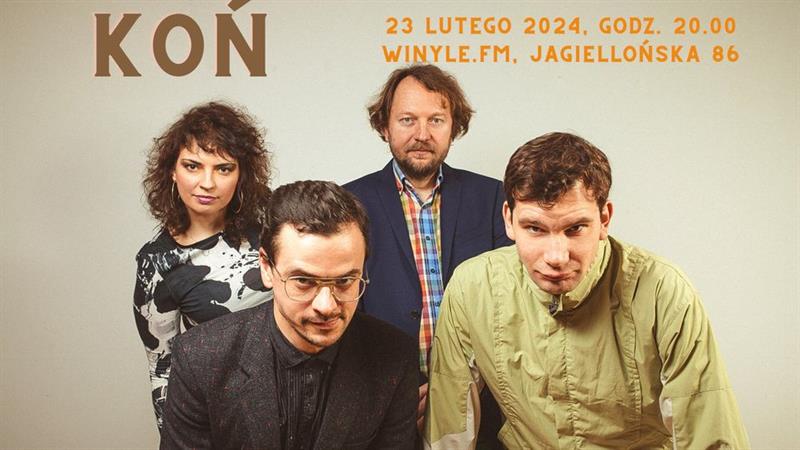 W piątek o g. 20 w sklepie winyle.fm przy ul. Jagiellońskiej 86 zagra zespół „KOŃ”. Oto, co dziennikarz napisał o jednym z utworów grupy: „Nagły przypływ jaskrawości” jest rzeczą absolutnie doskonałą. Słuchając tego utworu do nieprzytomności mogę z całą mocą stwierdzić, że człowiek wymyślił muzykę właśnie po to, aby takie cudeńka powstawały. Choć przecież wiem, że mamy do czynienia z profesjonalistami, co to kontrolę materii muzycznej mają w małym palcu. Jeśliby przyjąć, że ten Koń robi dopiero pierwszy krok, a w zamiarze ma dłuższy bieg, czy może raczej cwał powinienem napisać, to na samą myśl o następnych artystycznych dokonaniach mam ciarki wielkości terenów pod niepowstałą elektrownię w Ostrołęce”.