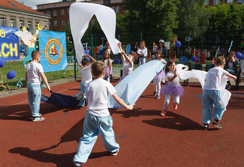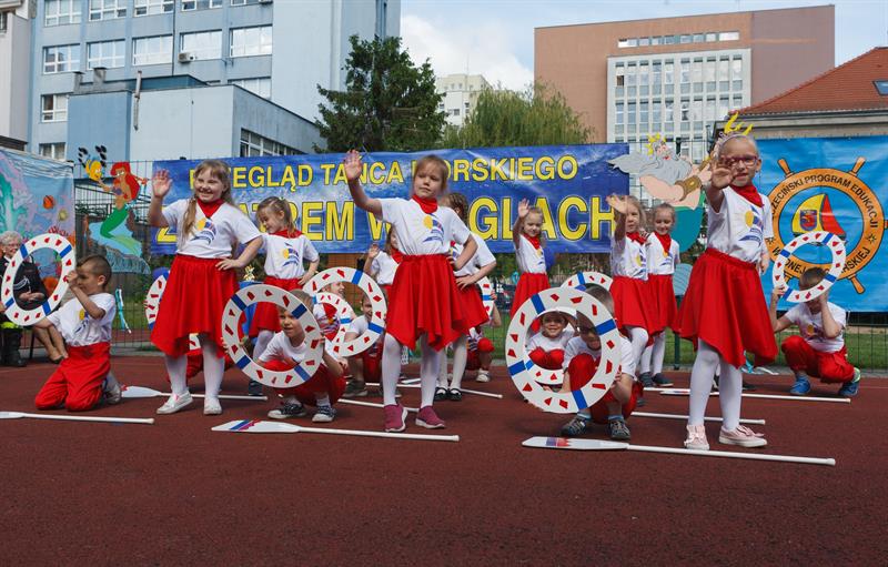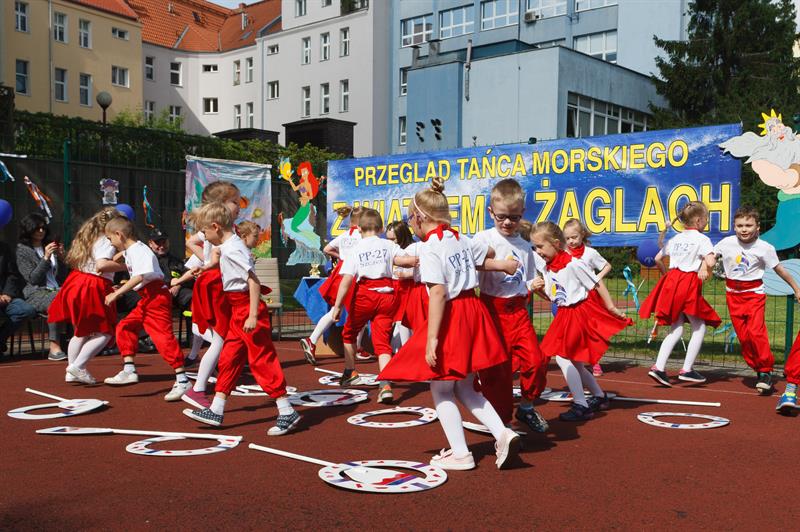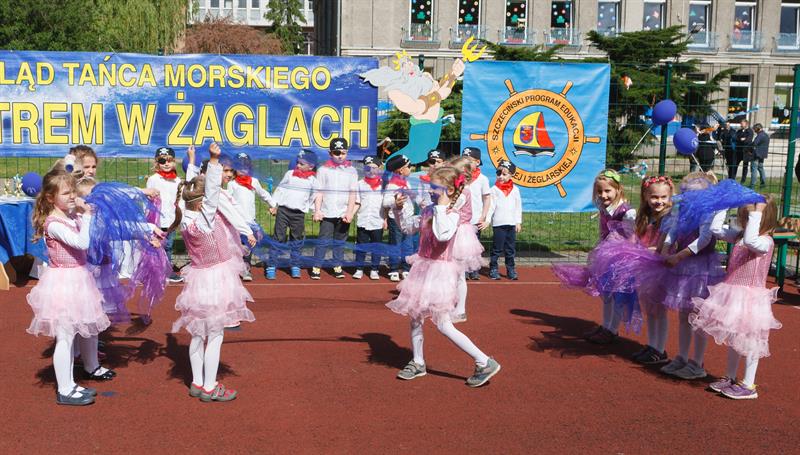 Najpierw wodowanie statku, a potem długa radosna zabawa - tak wyglądała impreza, zorganizowana w czwartek (23 maja) w przedszkolu "Żagielek" przy ul. Henryka Pobożnego w Szczecinie. Odbył się tam XIV Przegląd Tańca Morskiego "Z wiatrem w żaglach", poprzedzony nadaniem imienia okrętowi na przedszkolnym placu zabaw. A ten nie mógł się nazywać inaczej niż...Żagielek! W przeglądzie, który jest pokazem umiejętności wokalno-tanecznych maluchów wzięło udział ponad 140 dzieci ze szczecińskich placówek oświatowych, w których ważna jest edukacja morska - Szkoły Podstawowej nr 11 oraz przedszkoli nr 4, 9, 50, 65 i 66. Na widowni, poza rodzicami, i nauczycielami, jak zawsze nie zabrakło gości ze środowiska żeglarskiego. Kolejna taka impreza już za rok.
