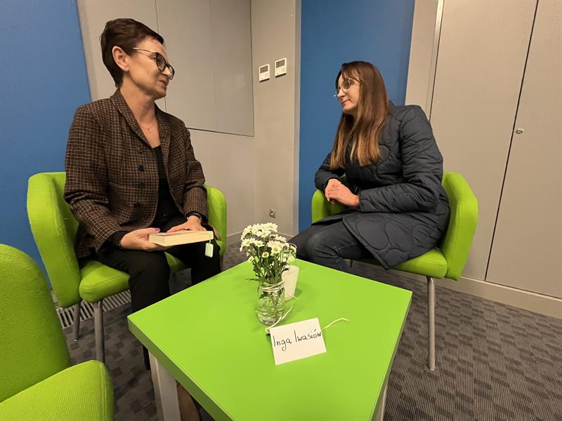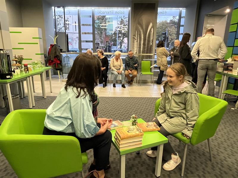 Marcin Grzelak, Inga Iwasiów, Marek Stelar, Monika Wilczyńska, Beata Zuzanna-Borawska, Michał Dłużak, Monika Marin czy Małgorzata Duda - to nazwiska pisarzy i pisarek, którzy spotkali się z czytelnikami Miejskiej Biblioteki Publicznej w piątkowy (11 października) wieczór w "Kawiarence literackiej". Każdy mógł przysiąść się do dowolnego stolika, spędzić czas z ulubionym autorem, wypić z nim kawę lub herbatę. Rozmowy o literaturze, pisaniu i tworzeniu ciekawych i wciągających historii odbywały się w przyjemnej atmosferze. Wydarzenie zorganizowano w ramach 10. Nocy Bibliotek oraz projektu [Menu literackie]. W trakcie spotkania można było zakupić książki za pośrednictwem Księgarni Mandala i otrzymać autograf ulubionego autora.