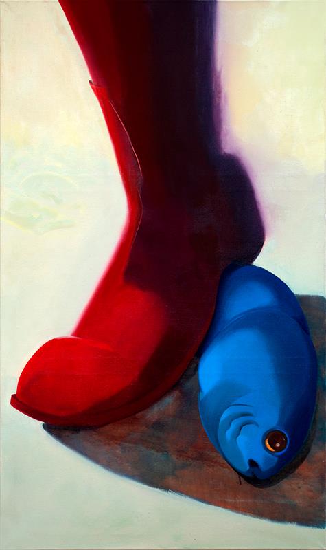 – "Pytają a ja płaczę rzewniej" jest opowieścią o punkcie pomiędzy dwoma skrajnościami: zbyt małą a zbyt dużą pewnością siebie. Obszar ten, nazwany „równikowym pasem ciszy”, opisany został przez Rebeccę Solnit w książce „Mężczyźni objaśniają mi świat”. Przedmioty i postacie na obrazach artystki są pozwijane, splątane, przygniecione. Ciąży na nich odpowiedzialność odpowiedzi na zadawane przez innych pytania. Te uświadamiają bohaterkom obrazów, że ze światem jest coraz gorzej– informują organizatorzy.
