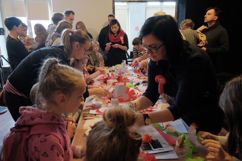 Z okazji Narodowego Święta Niepodległości Szczecińska Agencja Artystyczna w poniedziałek 11 listopada zaprosiła dzieci i dorosłych na warsztaty edukacyjno-artystyczne o polskich barwach narodowych. Była to znakomita okazja, by wykonać różne biało-czerwone ozdoby - przypinki, kokardy, kotyliony, kwiaty, stworzyć małe dekoracje, a nawet portrety postaci historycznych. Dla najmłodszych to nie tylko plastyczna zabawa, ale ciekawa forma spotkanie z historią, dla wszystkich bardzo dobrze spędzony wspólnie czas tego wyjątkowego dnia.