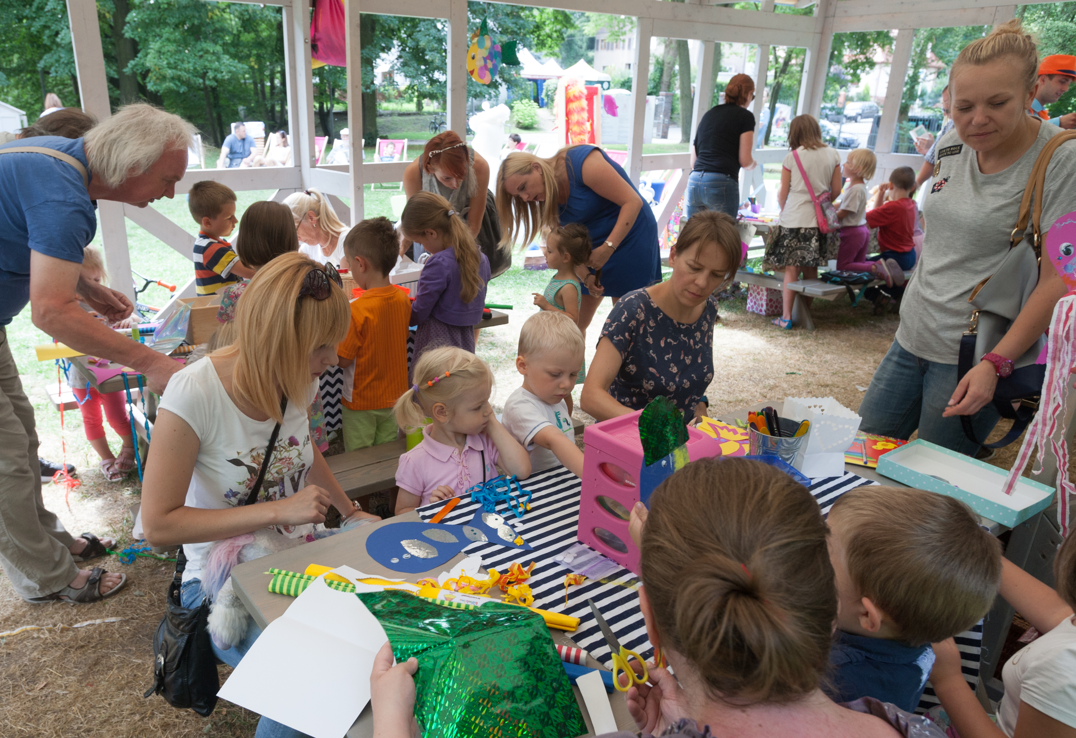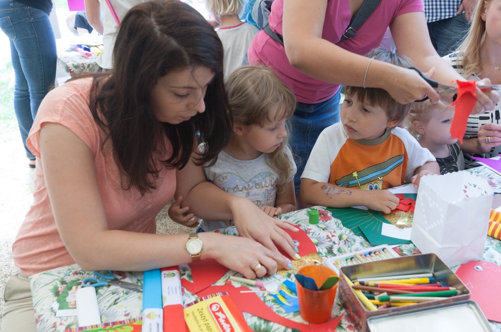 Pogoda dopisała, więc w sobotę, w Różance pojawił się prawdziwy tłum ludzi. Polanę okupowali najmłodsi, na których czekały zajęcia plastyczne i teatralne (przygotowywano m.in. suknię do spektaklu), oraz ich rodzice, korzystający z plenerowej czytelni na bujanych fotelach leżakach.
