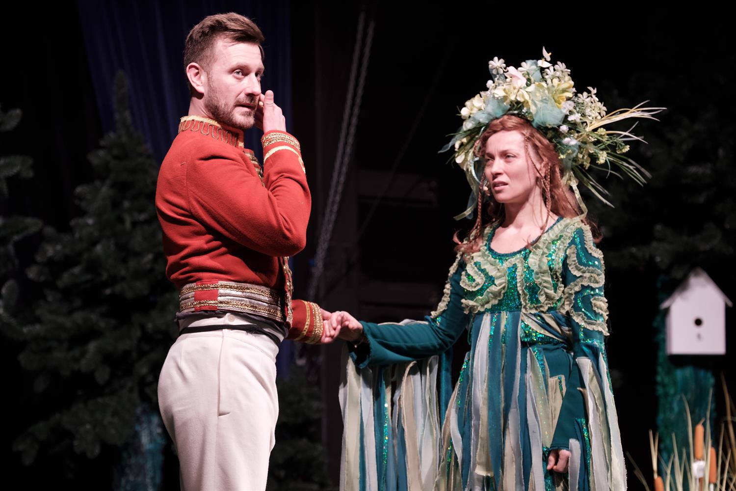 W spektaklu sporo się dzieje, jedna przygoda goni kolejną, jest dużo muzyki i piosenek, ładna scenografia i kolorowe stroje, sporo humoru oraz interakcji z małymi widzami, nieco uwspółcześnionych tekstów, które są "puszczaniem oka" do choćby widza dorosłego, ciut dydaktyzmu, a dobro zwycięża tu nad złem. No i role aktorskie, które zapadają w pamięć - choćby wspomnianego Sławomira Kołakowskiego jako lokaja Księcia Pana (wielkie brawa, ten sezon artystyczny to same znakomite kreacje), Piotra Bumaja jako fryzjera (kolejna rola, po "Pensjonacie pana Biegańskiego", gdzie bohater ma, hmmm..., logopedyczny problem, obie skradły serca widzów), Sylwii Różyckiej - rusałki (Andulka raz jest zadziorna, kiedy indziej delikatna i romantyczna, ot, skomplikowana natura kobieca) i Dariusza Majchrzaka jako wodnika (mali widzowie byli oczarowani tą postacią, brawo).