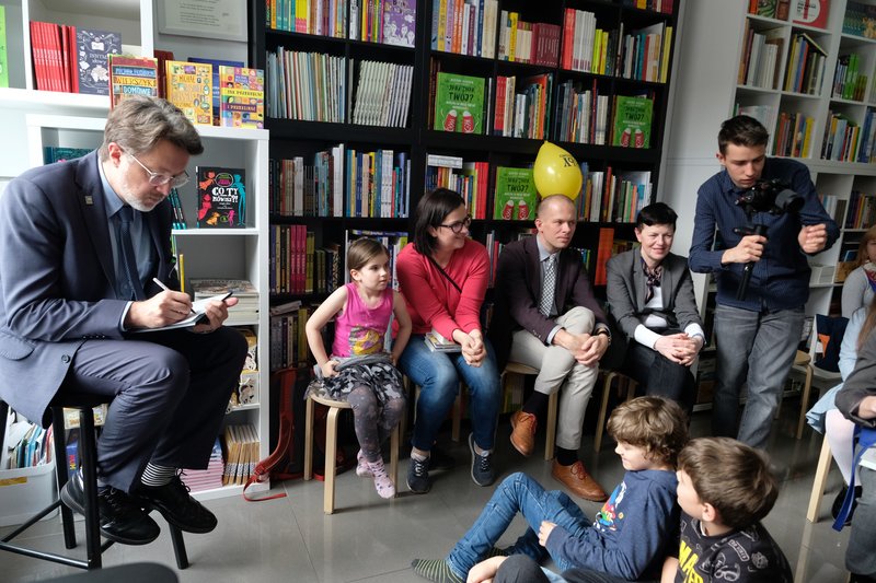 Powstała tu też opowieść autora, będąca znakomitą zabawą z przymiotnikami (i wzbudzającą salwy śmiechu przybyłych), a zaczynająca się od słów: "W entuzjastycznym Szczecinie...". Zresztą, tematów do rozmowy z autorem było sporo - ot, choćby patriotyzm, a propos książki pt. Jaki znak twój?. No i oczywiście nowy tytuł w twórczości autora pt. Niedorajda, książka która dopiero będzie miała swoją premierę, a szczecińscy czytelnicy mieli okazję już teraz ją poznać.