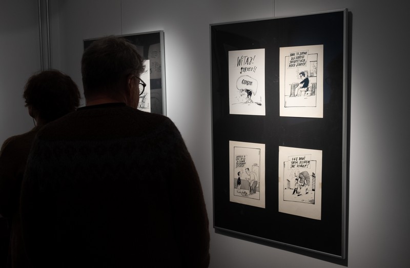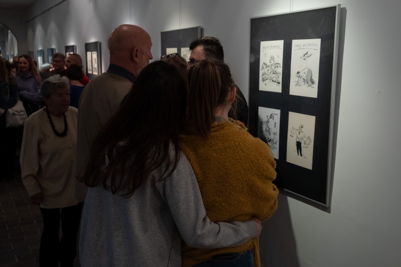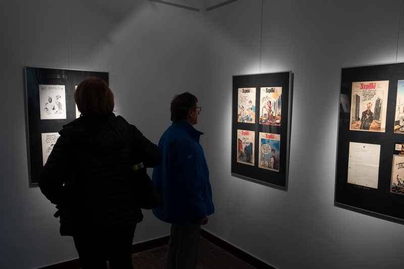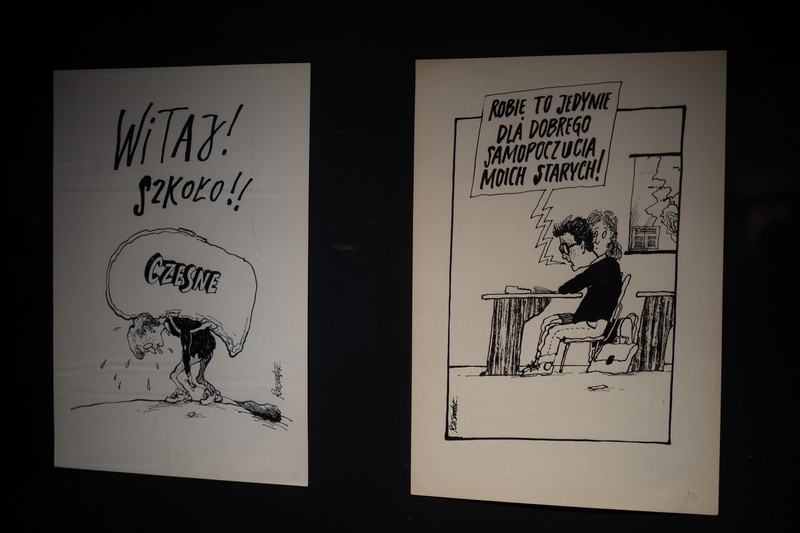 Było tłumnie, ciekawie i muzycznie. I, co trzeba podkreślić, wręcz rodzinnie. A to dlatego, że wernisaż wystawy szczecińskiego artysty Tomasza Rzeszutka, odbył się w Liceum Plastycznym, którego jest absolwentem. W świetnie wyposażonej przez firmę Neptun Developer szkolnej galerii zaprezentowano jego rysunki prasowe, zamieszczane w prasie ogólnopolskiej i lokalnej w latach 1985 - 90. Trzeba przyznać, że świetnie oddawały one klimat tamtych, schyłkowych czasów tzw. komuny, czemu trudno się dziwić, bo autor wystawy był w tamtych czasach jednym z najbardziej cenionych i pożądanych polskich rysowników. Świadczą o tym liczne nagrody, w tym chyba najbardziej prestiżowa „Złota Szpilka” - nagroda redakcji ilustrowanego tygodnika satyrycznego „Szpilki”, przyznawana corocznie za najlepsze rysunki w dwóch kategoriach: satyry i humoru.